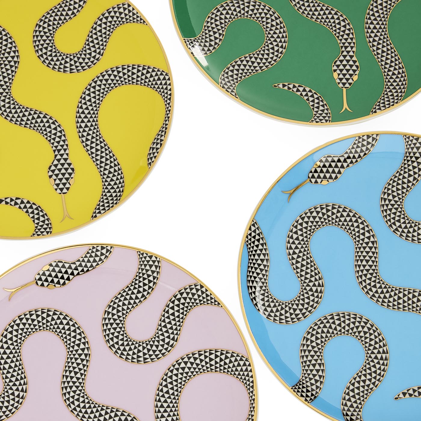Auffällige kleine Teller mit Jonathan Adler´s charakteristischen Eden Schlangen. Perfekt für Partys, Desserts oder winzige Häppchen. Akzentuiert mit echtem glitzerndem Gold für extra Biss, sind sie formell genug für ein fabelhaftes Fest, aber robust für den alltäglichen Luxusgebrauch. Verpackt in einer schleifenbereiten Geschenkbox zum einfachen Verschenken und Aufbewahren.