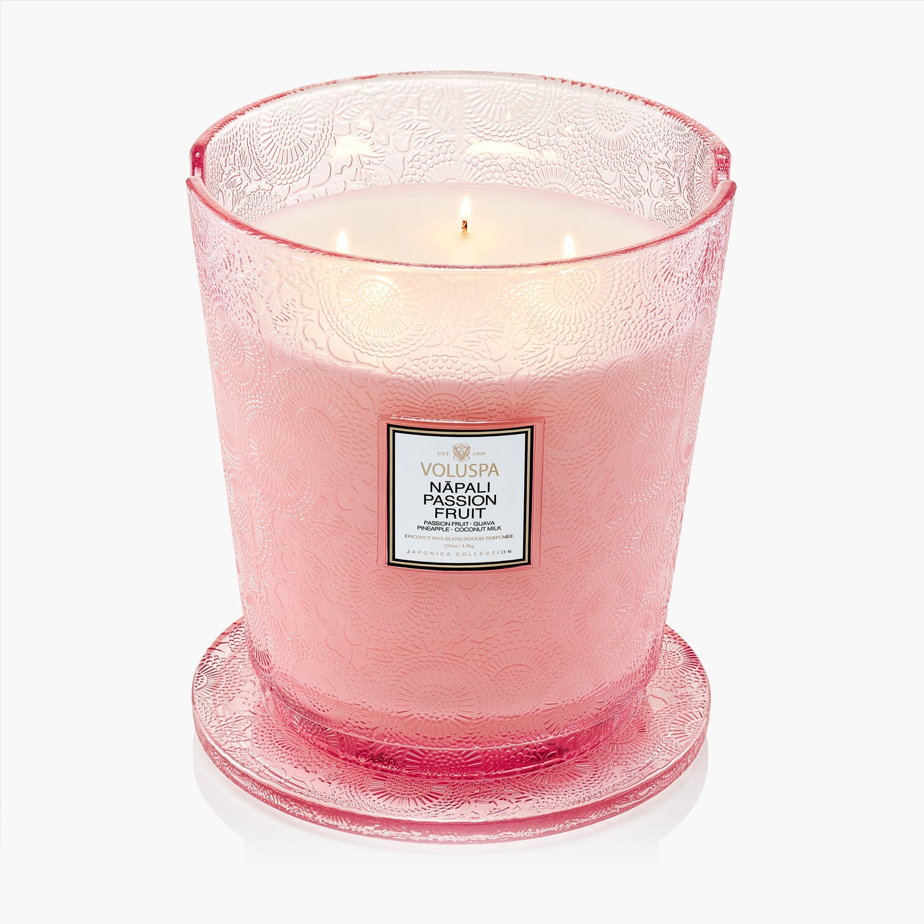 Unser neuester Liebling aus Paris sind die wunderschönen, luxuriösen und betörenden Duftkerzen von VOLUSPA - wie zum Beispiel der Duft Nāpali Passion Fruit als große 5-Docht-Duftkerze.