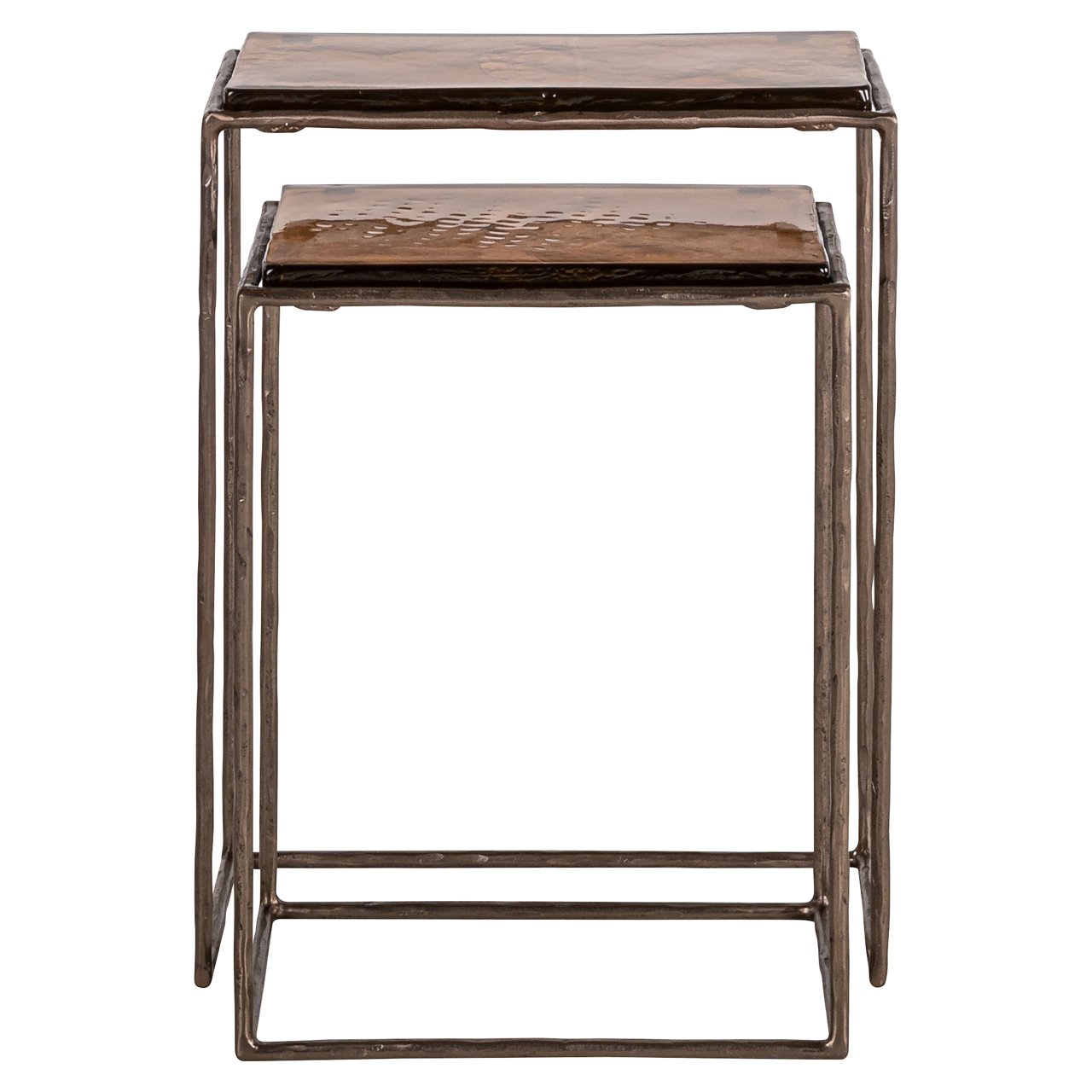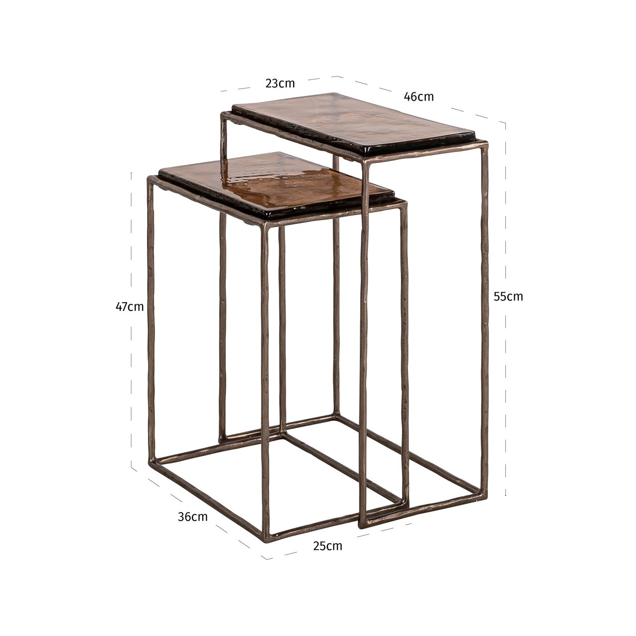Richmond Interiors 2er Set Beistelltisch Villano mit Glasplatte | Bronze