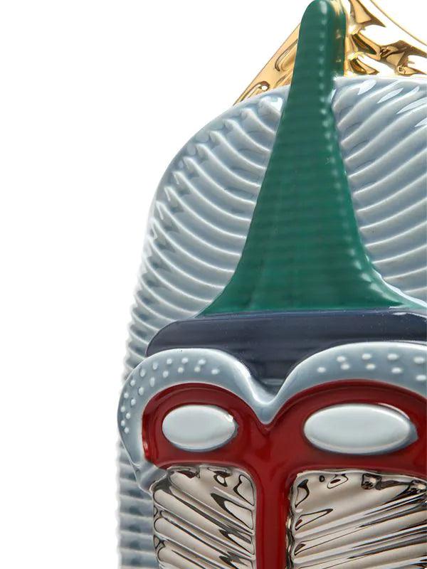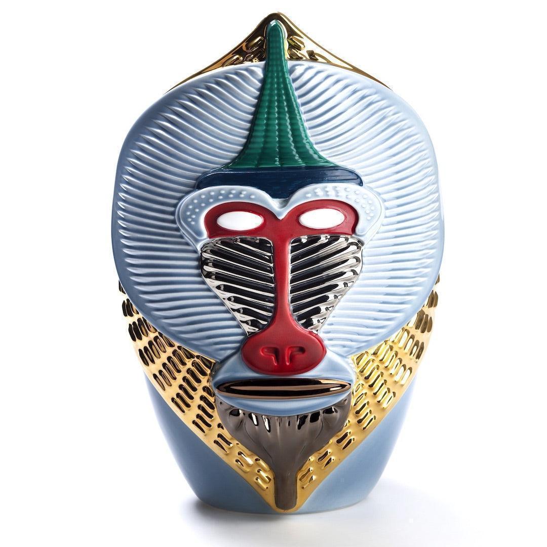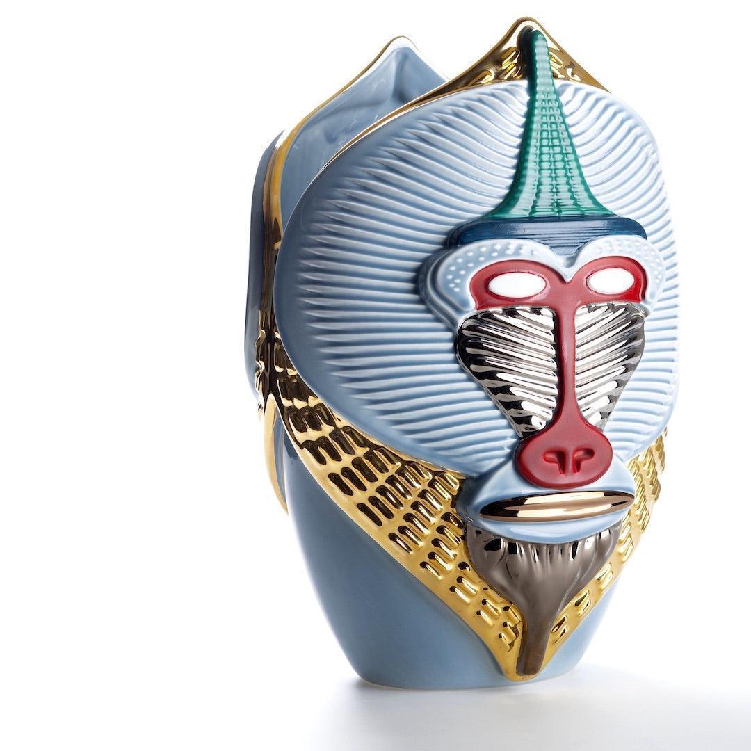 Die auffällige Keramik-Vase "Mandrillus" der mailändischen Designerin Elena Salmistraro für das italienische Traditionslabel Bosa zeigt das Gesicht eines zu den Meerkatzenverwandten gehörenden Mandrills. Sie ist Teil der ikonischen "Primates" Keramikserie von Bosa und wurde zu einer Art Wahrzeichen der Manufaktur. Die Vasen sind laut der Künstlerin eine zeitgenössische Neuinterpretation antiker römischer Keramik, die bekannt für ihren animistischen Charakter ist.